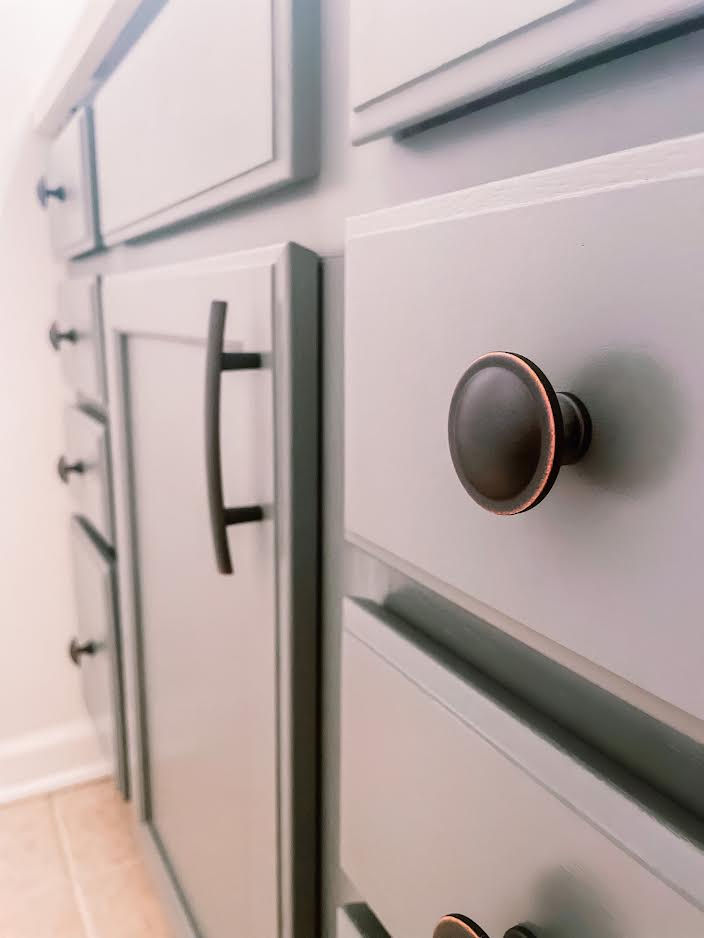 I didn't have anything in mind when shopping for hardware, I just knew I wanted them to give our vanity a "warm and timeless feel". These flat black knobs with just a hint of copper spoke to me.